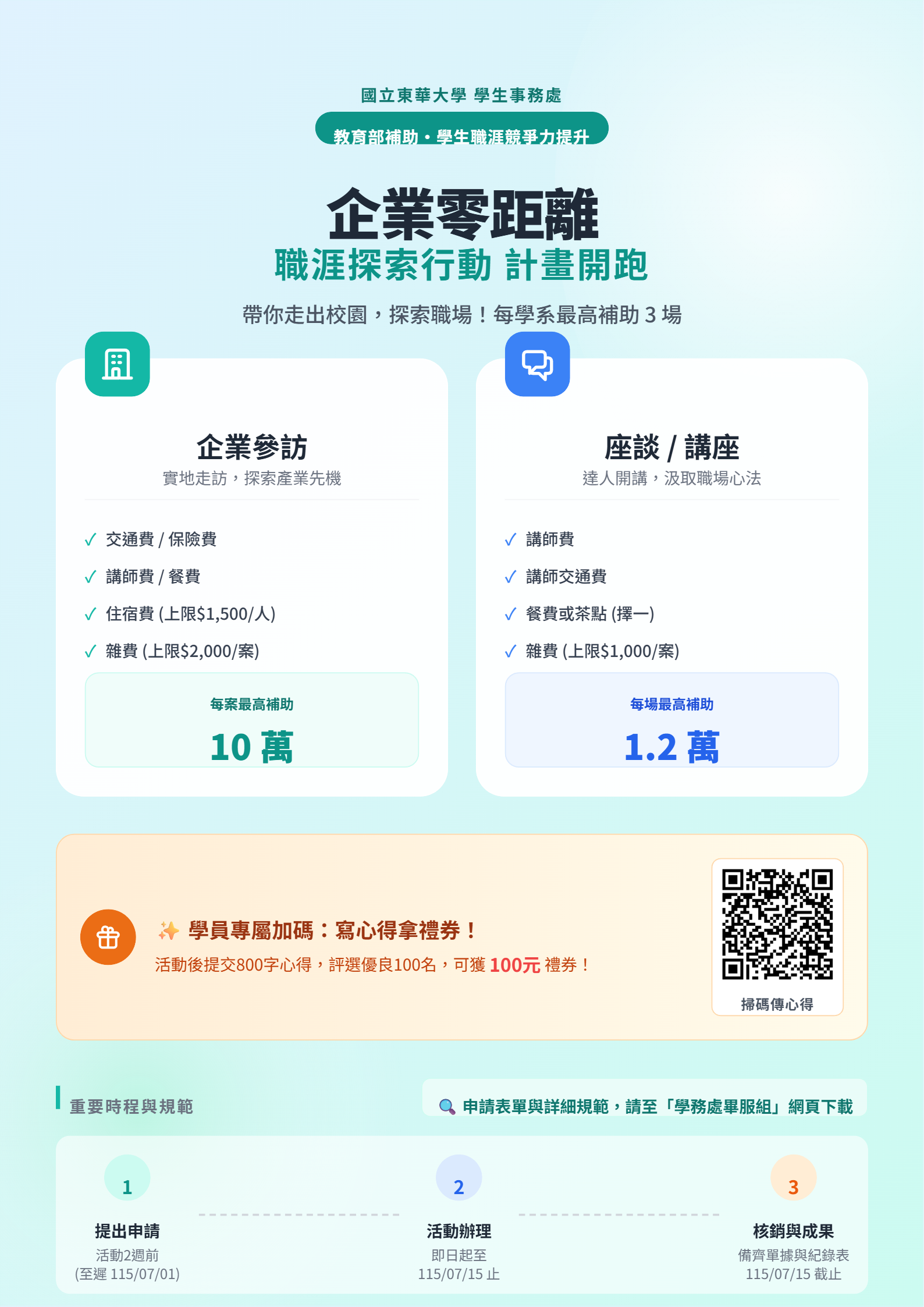 💥每學系補助場次:本學期至多3場(不限參訪或講座),每案均需填寫申請表。