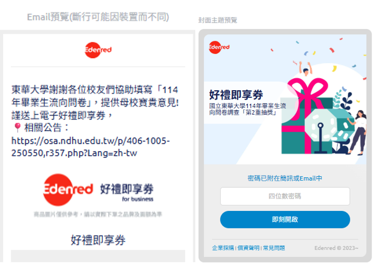 【重要訊息】114年度畢業生流向問卷調查「第2重抽獎」電子禮券發送事宜🔔