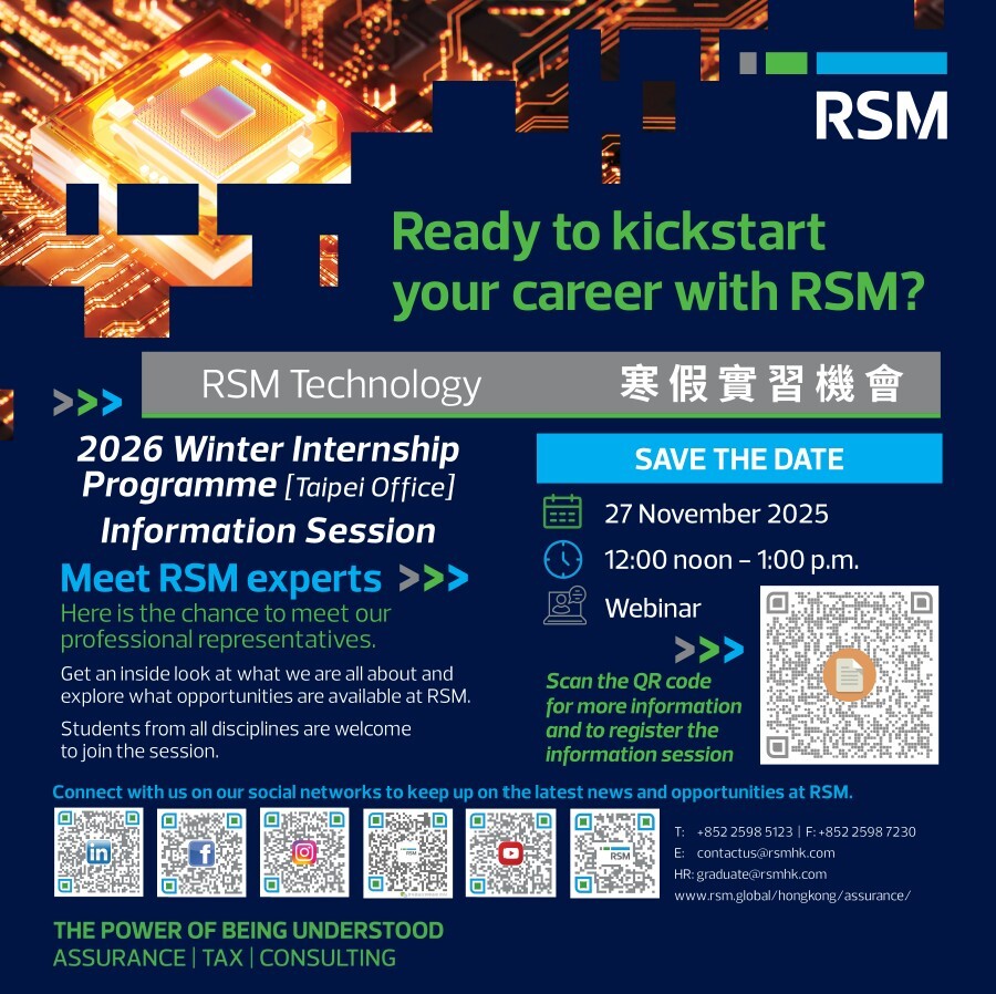【徵才訊息】RSM Technology 2026寒假工讀刻正招募中(臺北)💕歡迎報名線上說明會