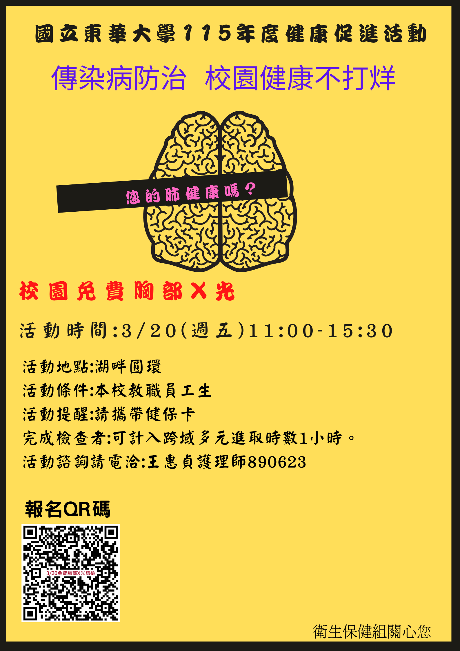 【健康促進活動】杜絕校園傳染病~3/20免費胸部x光篩檢活動