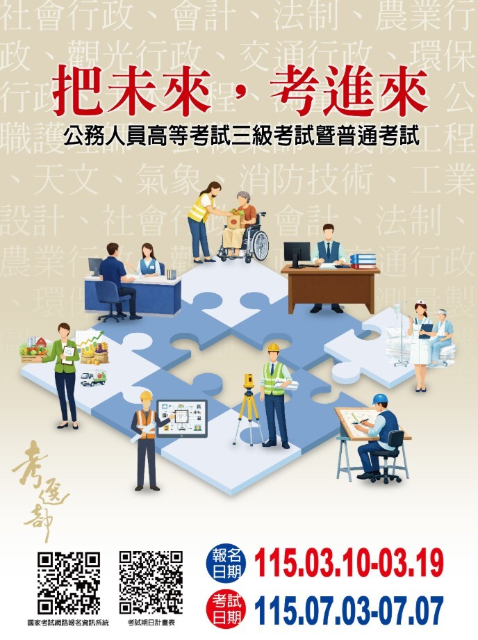 【就業/考試】115年公務人員高等考試三級考試暨普通考試3月10日開始報名🔥 (115年3月19日截止)